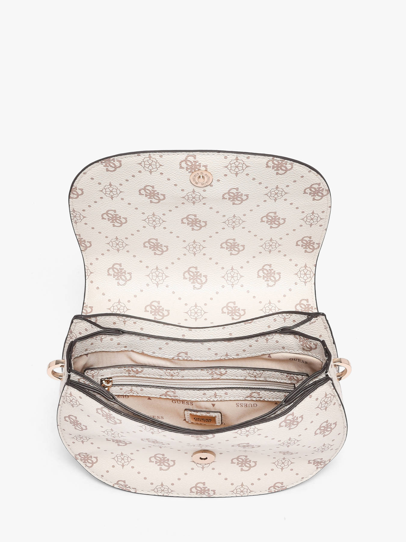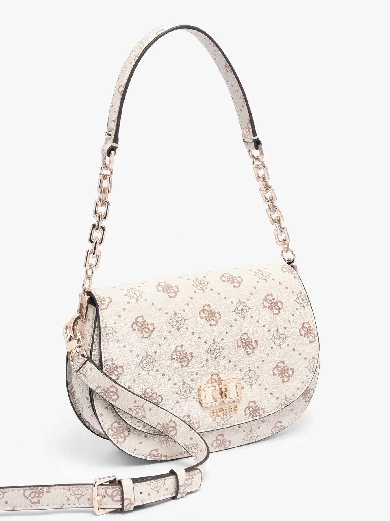 The EMELIE LOGO GUESS crossbody bag, made of P.U., combines contemporary style with everyday practicality. Its exterior features a flap with magnetic closure and a 23 cm handle, while the adjustable and removable strap allows versatile shoulder or crossbody wear. Inside, three compartments, a zip pocket, and six card slots provide organized storage for essentials such as your phone, wallet, or small accessories, ensuring convenience and accessibility. Lightweight, durable, and stylish, this EMELIE LOGO GUESS bag stands out for its modern design and refined details, adding a chic and functional touch to any outfit. Perfect for those seeking a practical and stylish bag, it is an essential accessory for daily use.