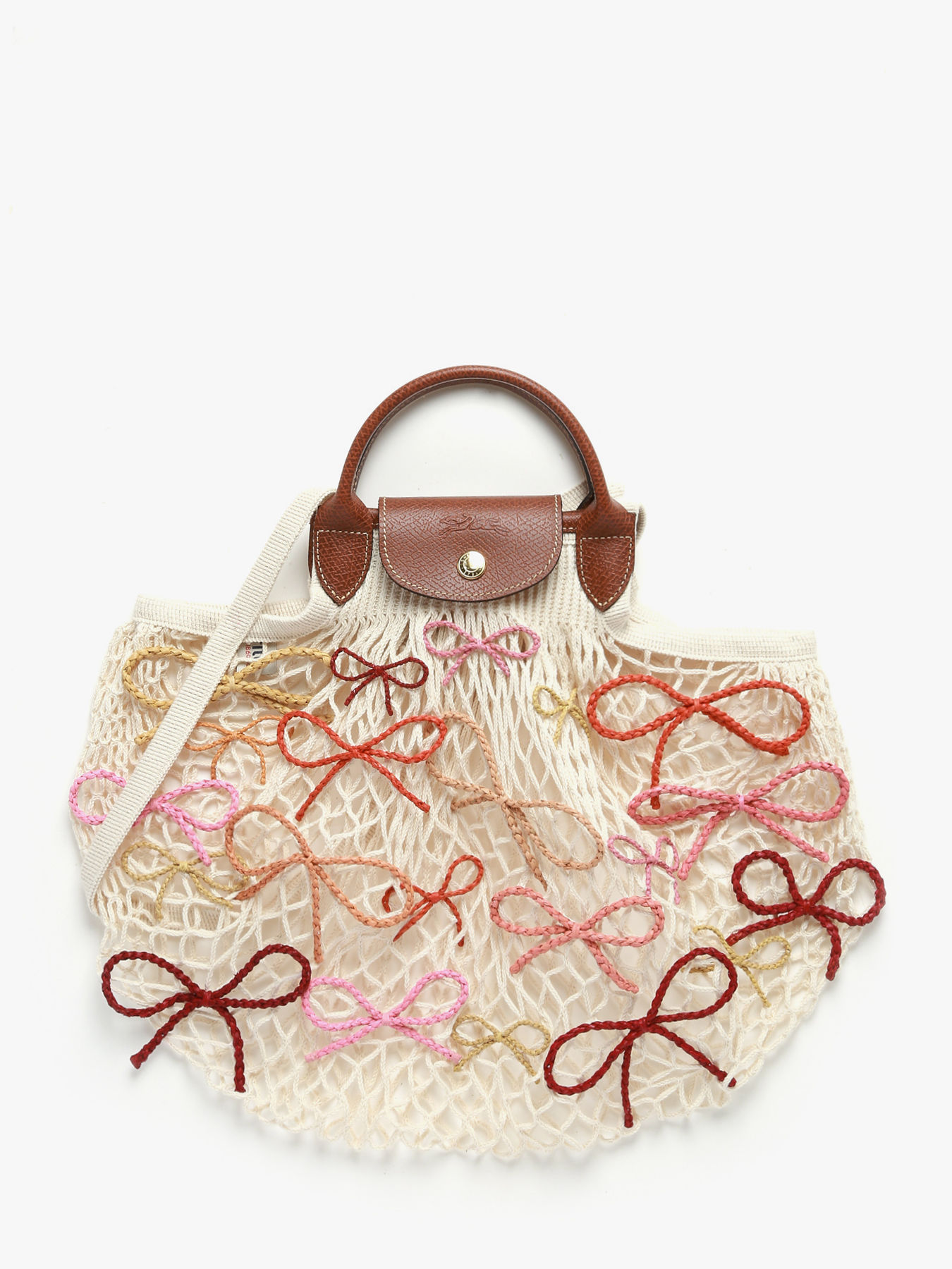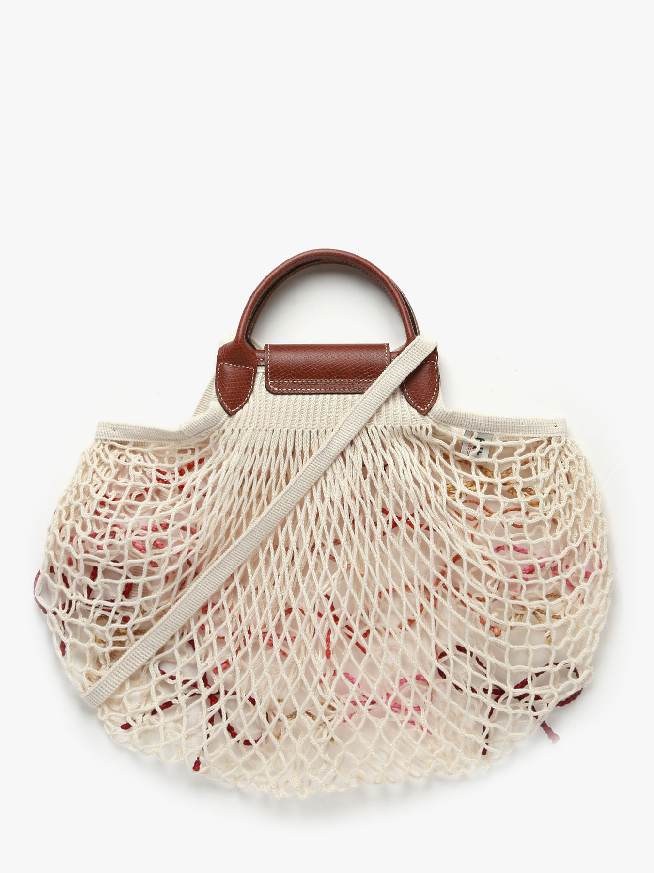 The Le Pliage Collection mesh bag by LONGCHAMP is crafted from cotton canvas and adorned with raffia knots handwoven by artisans from the NGO ANAKA in Madagascar, elegantly reinventing a classic piece. These artisanal details create subtle color gradients inspired by summer sunsets and the ocean, celebrating both authentic craftsmanship and the beauty of nature. This large, lightweight bag features a Russian leather flap, snap closure, and a single compartment, combining practicality and uniqueness. With a 5.5 cm handle height, it can be carried on the shoulder or by hand, perfect for carrying your summer essentials with style and ease. True to the PLIAGE codes, this collection is renewed season after season to accompany a creative and dynamic daily life, full of elegance.