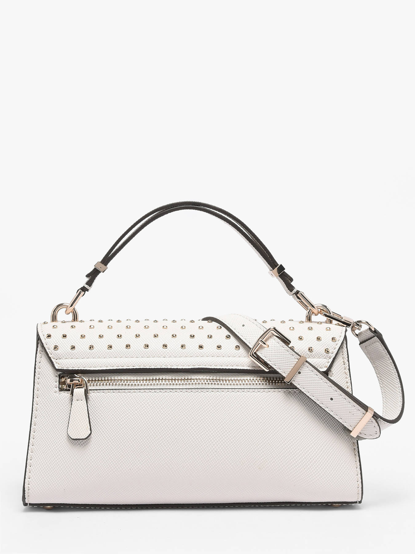 The PATSIE GUESS crossbody bag in PU combines modern style with practicality. Its flap with magnetic closure keeps your belongings secure while allowing quick access to essentials. Inside, one main compartment, a zip pocket, and three card slots provide organized and efficient storage for your personal items. On the outside, a back pocket offers practical storage for must-haves. The adjustable and detachable strap allows it to be carried by hand or crossbody, while the 8.5 cm handle height ensures optimal comfort. Compact and structured, this bag perfectly complements urban or sophisticated outfits, adding a chic and contemporary touch to any look. Every detail, from the refined finishes to the quality PU material, reflects GUESS’s craftsmanship, making this bag a stylish, elegant, and functional accessory for everyday use.